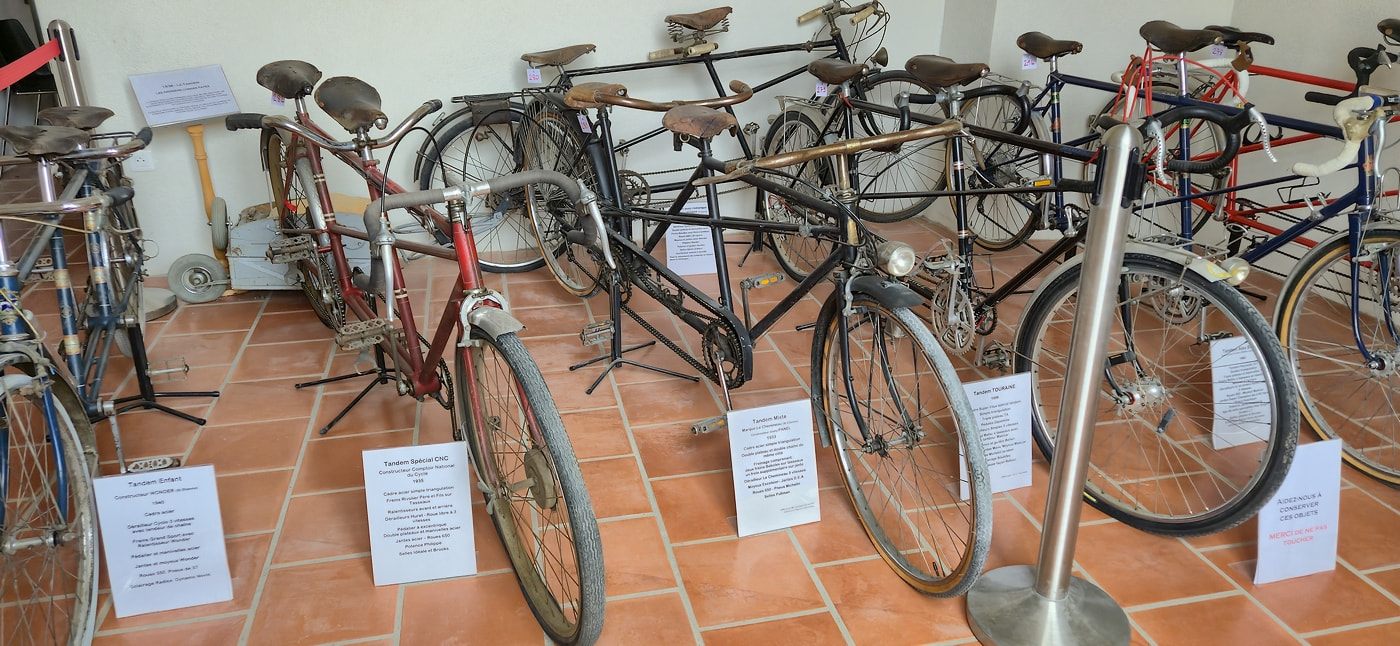 Sont également présentées les plus belles randonneuses des grands couturiers du cycle, Dujardin, Herse, Pitard, Routens, Singer etc… Les tandems sont aussi en évidence dont le fameux tandem des congés payés de 1936 !