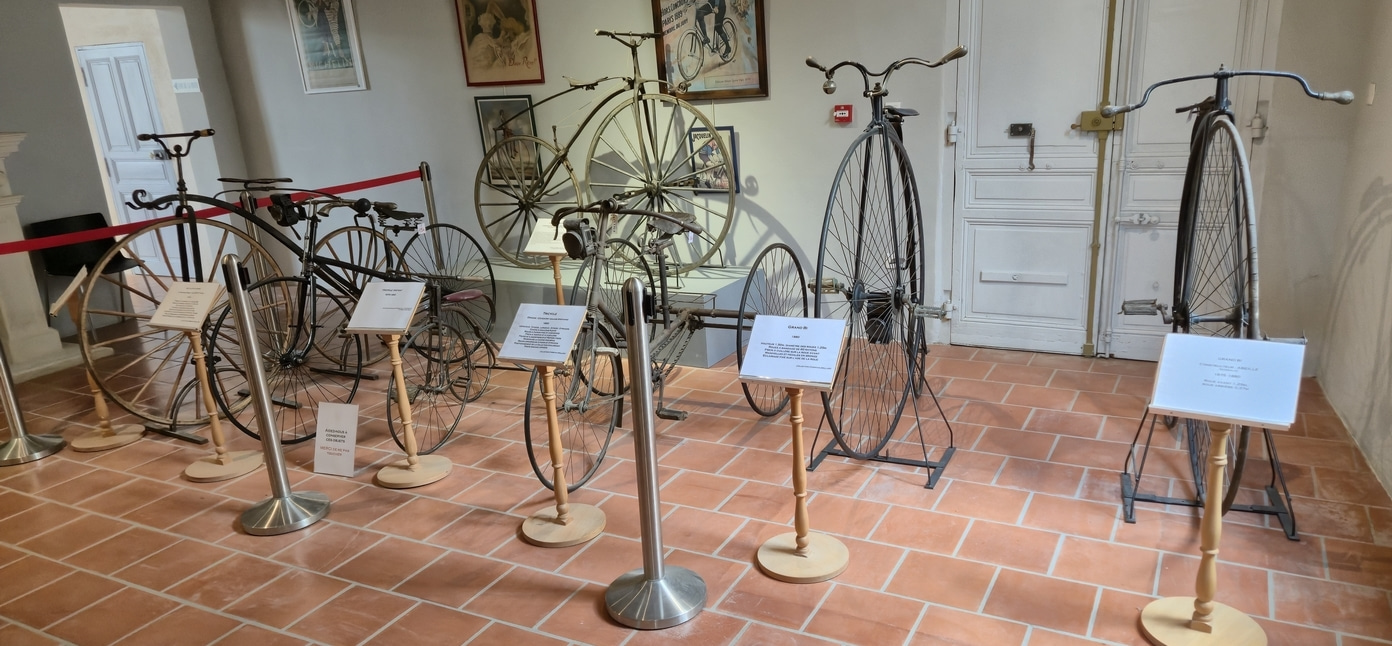 Le musée se compose de quatre salles d’exposition au rez-de-chaussée et d’une salle de lecture et vidéo, d’une double salle au premier étage et de quatre autres salles au dernier niveau. Vous pourrez y admirer et examiner par le détail, plus de 150 ans de l’histoire du cycle, du vélocipède de Pierre Michaux de 1869 au dernier vélo de contre la montre, tout carbone. Mais aussi l’histoire du vélo de course depuis le Fageot de 1885, jusqu’à ceux des plus grandes marques qui ont remporté le Tour de France, Thomann, Terrot, Helyett, Lejeune, Peugeot, Gitane, Colnago etc…