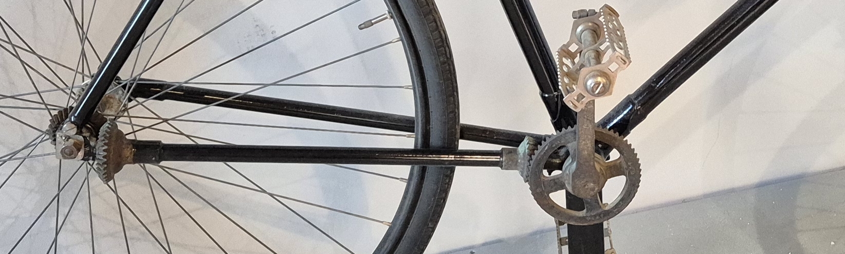 À cette période, les constructeurs se livrent à une véritable guerre des chaînes, depuis que Henry J. Lawson a présenté en 1879 une bicyclette à traction arrière par chaîne. Mais la solidité fait encore défaut à ce type de transmission et les fabricants réfléchissent à d’autres solutions comme sur ce modèle Acatène où la roue arrière est entraînée par un jeu d’engrenages coniques.